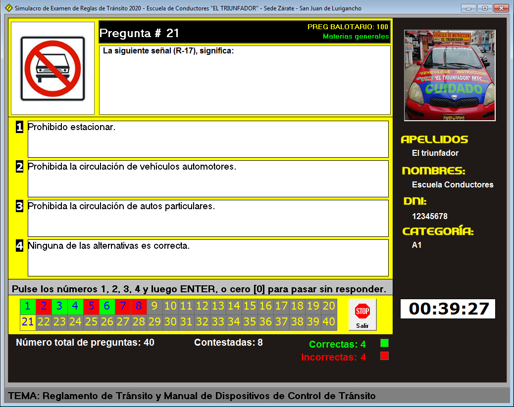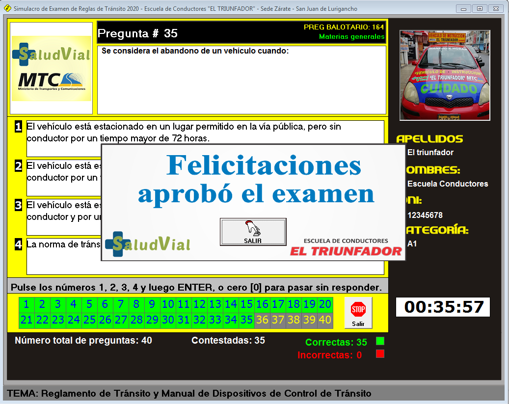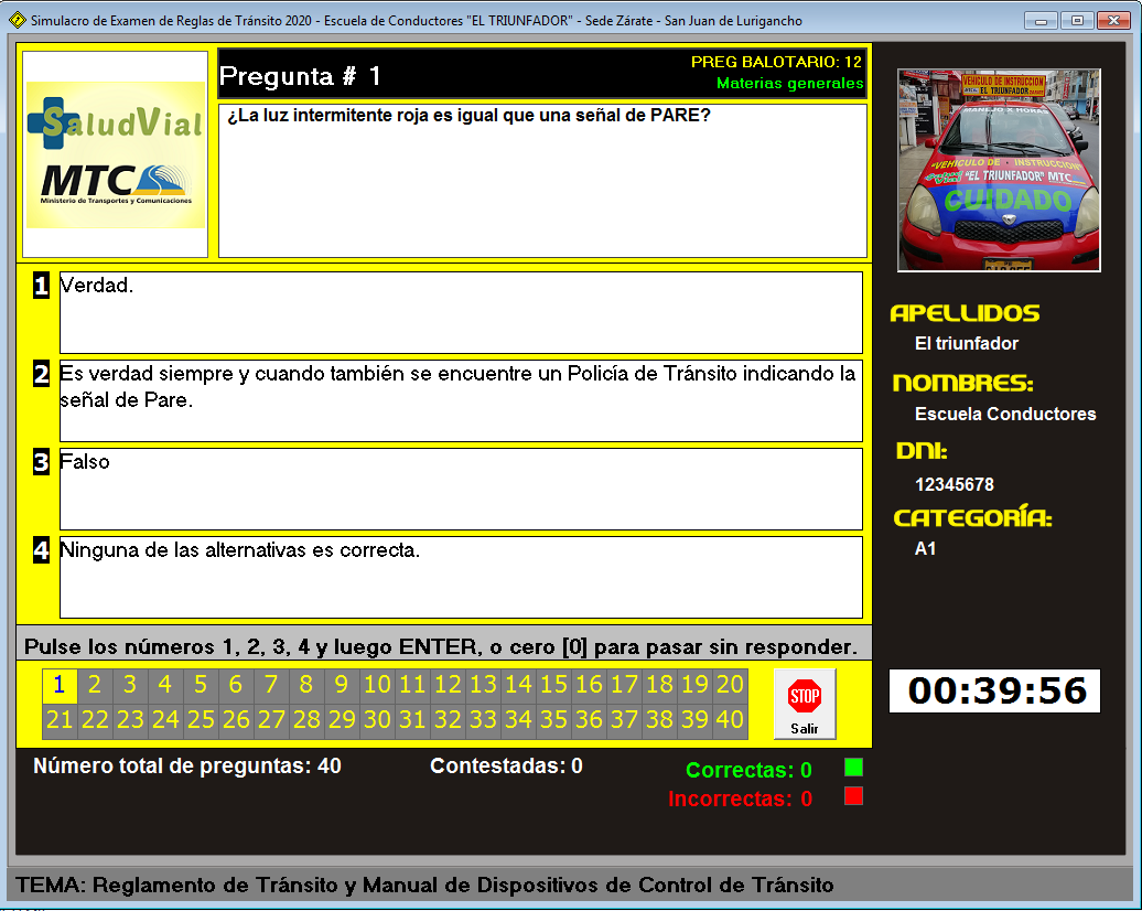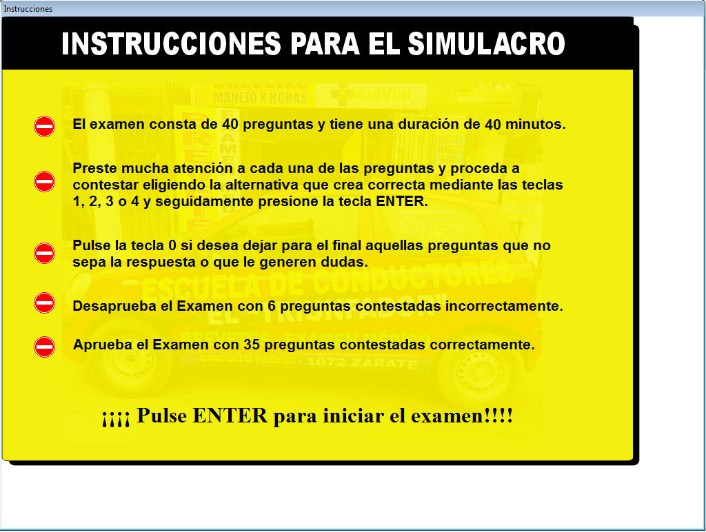 A nuestros alumnos les proporcionamos en físico un CD con un software Simulador del Examen de Conocimientos o también conocido como Simulacro de Examen de Reglas de Tránsito. Con este simulacro pueden practicar el examen de conocimientos en su propia computadora y sin necesidad de contar con conexión a Internet. Este simulacro tiene la misma dinámica